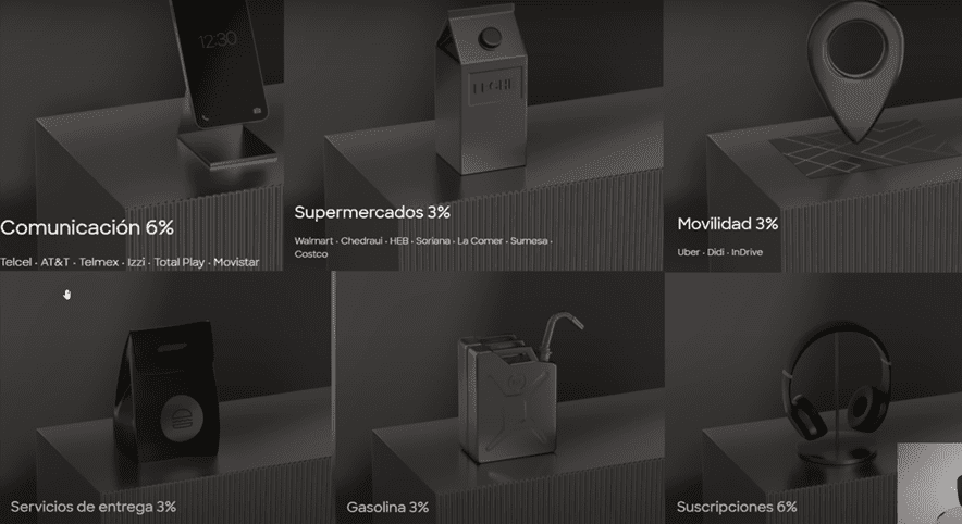 Luego, hay otras categorías que te dan el 3%, por ejemplo, si gastas en supermercados como Walmart, Chedraui, HEB, Soriana, La Comer, Sumesa y Costco.