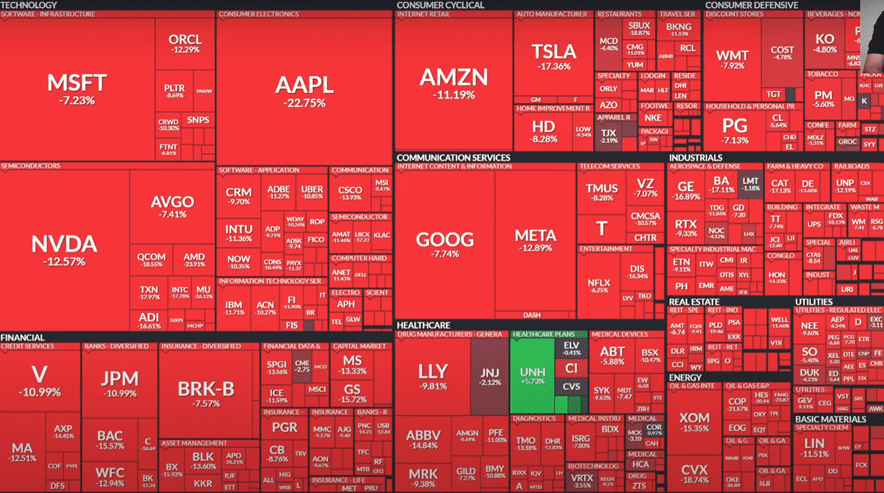 Acciones como Nvidia bajaron 12%, Amazon 11%, Facebook bajó 13%, Tesla -17% y así un montón de empresas grandes.