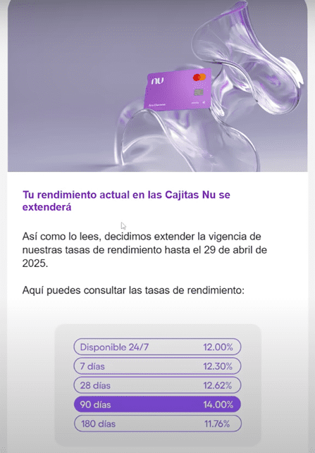 Te voy a mostrar el comunicado que mandó Nu a los usuarios.