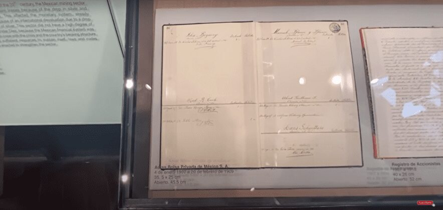 Tienen en las vitrinas documentos muy antiguos hechos en las máquinas de escribir, esos fueron los inicios de la bolsa mexicana de valores.