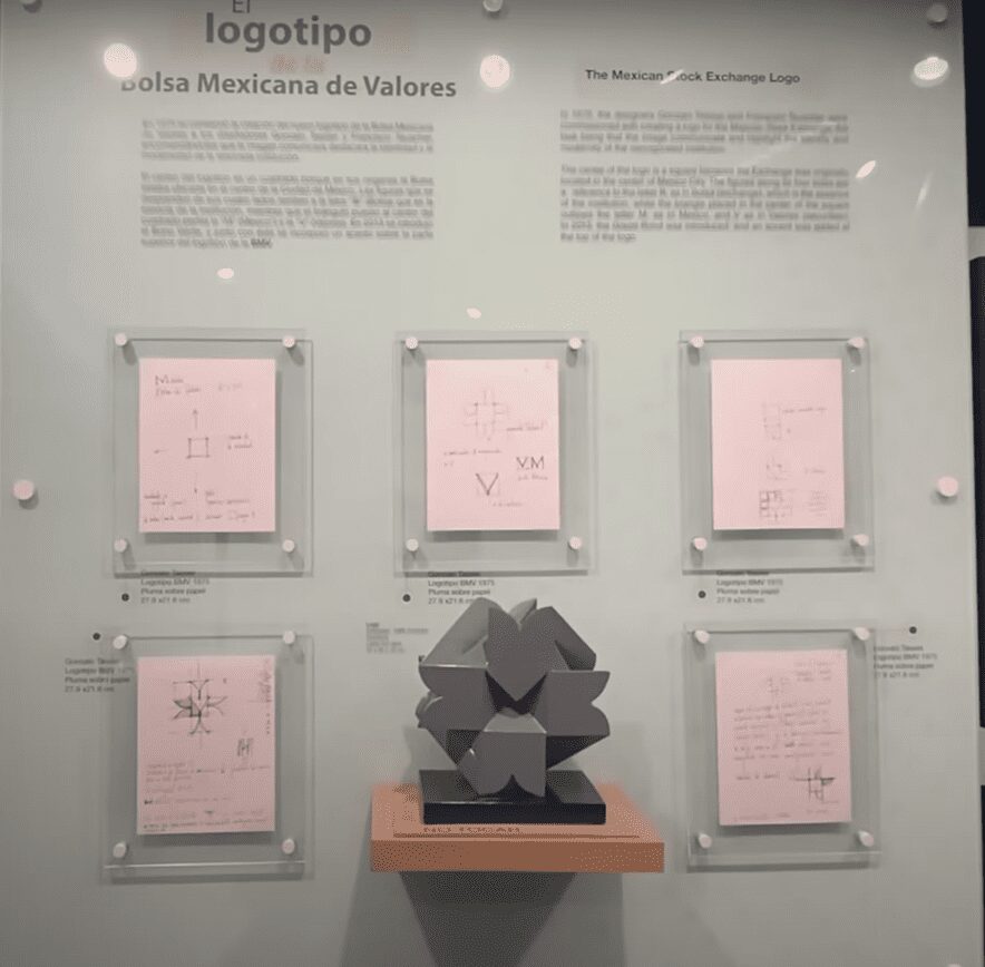 Se habla sobre el logotipo de la bolsa mexicana de valores, cómo es que lo fueron diseñando con pluma y papel y cómo quedó al final.