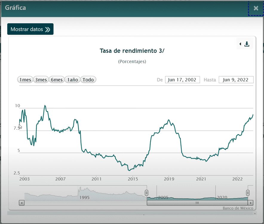 Pero ahorita con la inflación que es muy alta la tasa de Cetes no paró de subir y ahorita está en el 9%.