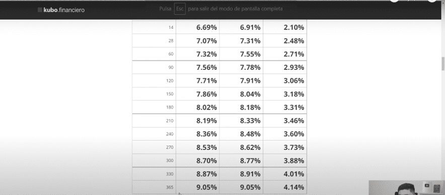 Y de ahí si te vas a plazos menores la tasa va bajando, más adelante vemos el rango completo.