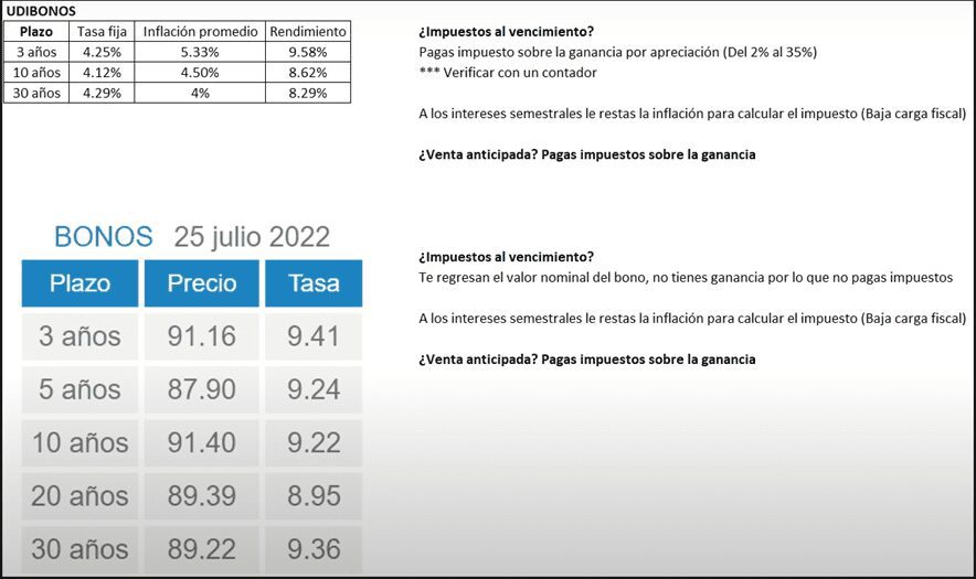 Por ejemplo, ahorita el UDIBONO a 3 años tiene una tasa fija de 4.25% y si la inflación se mantiene en el siguiente año por el 8%, a ti te darían el 4.25% más el 8% de la inflación.