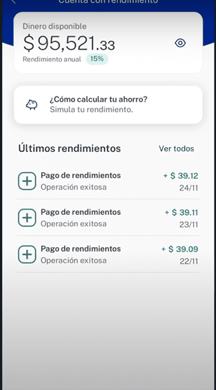 La condición es muy sencilla, pones tu dinero ahí y activas la función de rendimientos y diario te van a estar pagando tus intereses.