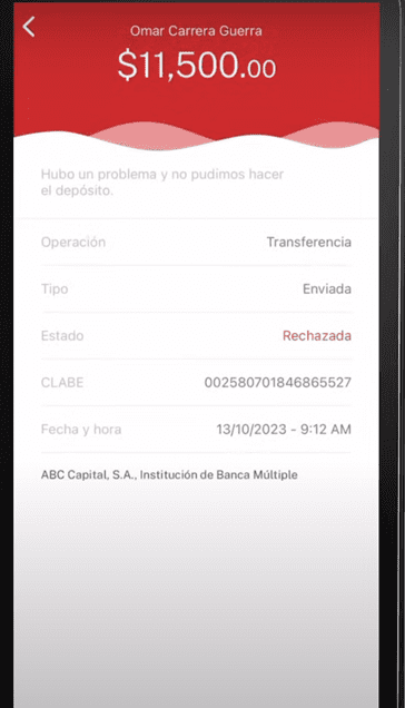 Otro detalle que encontré en la aplicación es que solo puedes hacer una transferencia SPEI por hasta $11,500 pesos por transferencia.