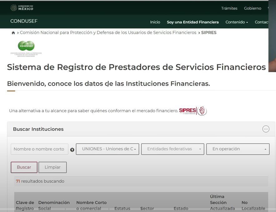 Me aparecen 71 uniones de crédito, son bastantes y se parecen mucho a las SOFIPOS.