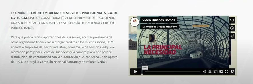 En la página de inicio de unión de crédito mexicano dice que son una institución financiera boutique qué ofrece y fomenta servicios de inversión, crédito, arrendamiento y ahorro en condiciones favorables para todos los socios.